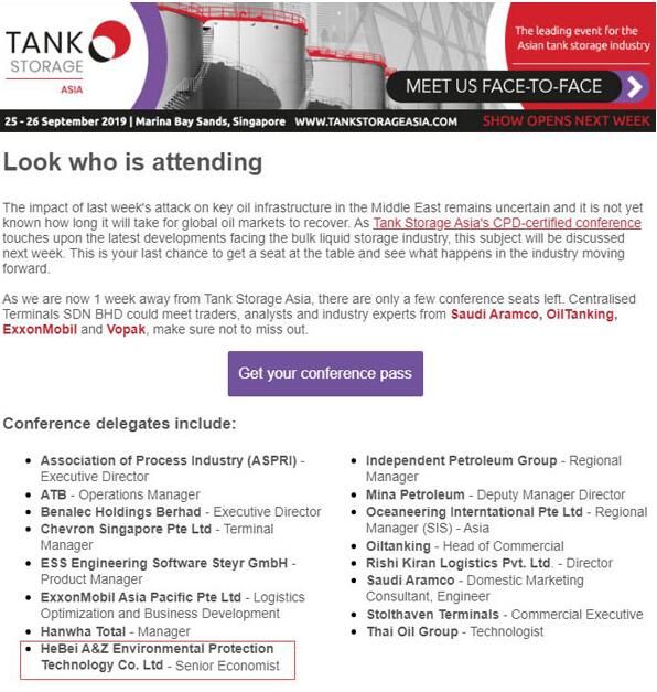 2019年9月底,澳科中意相關(guān)部門人員組成的考察團參加了在新加坡舉行的2019年亞洲儲罐展會。本次澳科中意技術(shù)的相關(guān)人員除了以“Visitor”(訪客)身份參會以外,還首次以“Delegate”(代表)身份參與展會中的高端論壇。