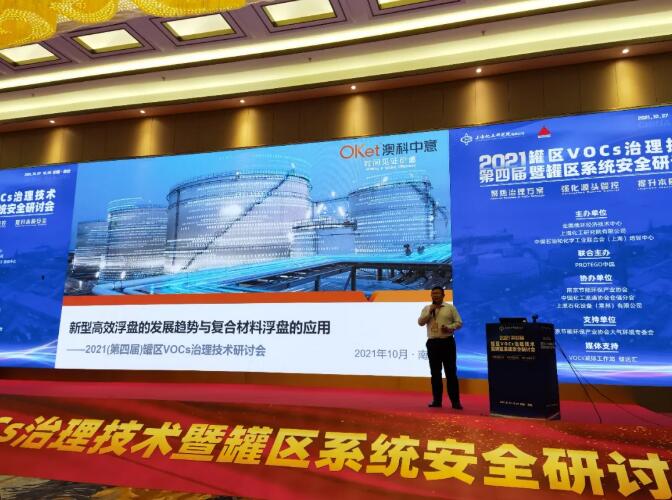 澳科中意曹琛以《新型高效浮盤的發(fā)展趨勢(shì)與復(fù)合材料浮盤的應(yīng)用》